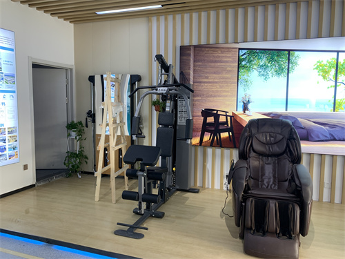 私家健身區是我們根據濟南人當地的情形,選擇了幾款適用于我們的有氧和無氧、休閑的產品,比如單人站,占地面積小,而且適合個人使用的力量器械;跑步機、橢圓機和動感單車則重在強化我們的心肺能力,讓我們耐力更好;壁掛式拉繩訓練器占空間更小,可以及時糾正我們不太好的鍛煉姿勢,還可以根據自身能力,調整我們的鍛煉強度。