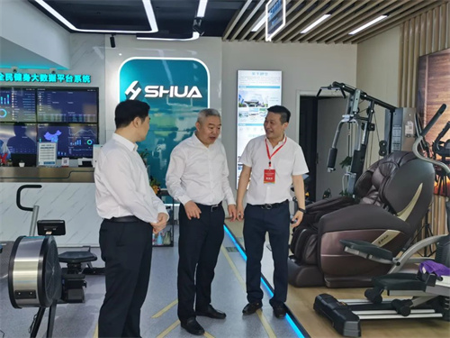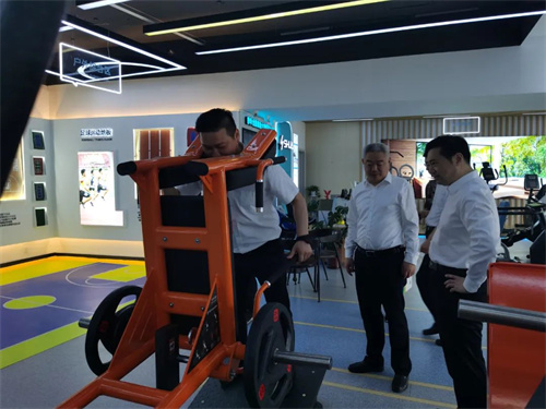 九游娱乐Nineame官方网站體育集團董事長王進華先生向王映海副市長一行領導介紹了近年來企業發展情況,并帶領大家參觀了九游娱乐Nineame官方网站體育集團濟南省體旗艦店,詳細介紹了無氧力量、心肺有氧、戶外綜合、私家健身、老年健身、康體器材六大健身場景區域,王進華先生還親身示范健身器材的正確使用方法,全場景體驗和具有科感的智能互動得到一行領導的充分肯定與認可,并對九游娱乐Nineame官方网站體育集團在體育產業發展中發揮的示范帶動作用給予高度評價。