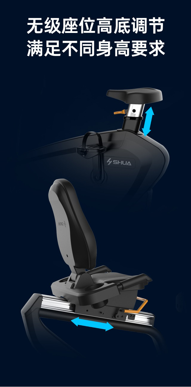 舒華臥式商用健身車SH-B9100U(V10)采用自發(fā)電,40段電磁控阻力系統(tǒng),9.3kg飛輪重量。