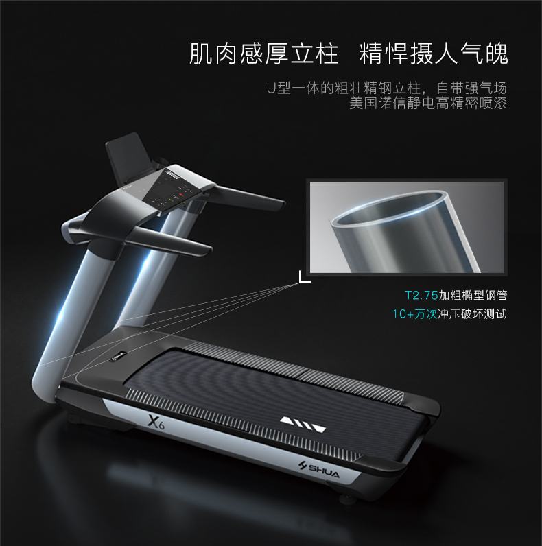 九游娱乐Nineame官方网站體育推薦健身器材-舒華商用電動跑步機SH-T6500擁有10.1寸IPS高清觸摸屏、Z型動感時尚外觀設計、70×150mm精鋼立柱機身、F級高效靜音馬達、520mm商用豪華跑帶和35mm雙層全跑臺減震跑板等優勢,讓您享受科學跑步。