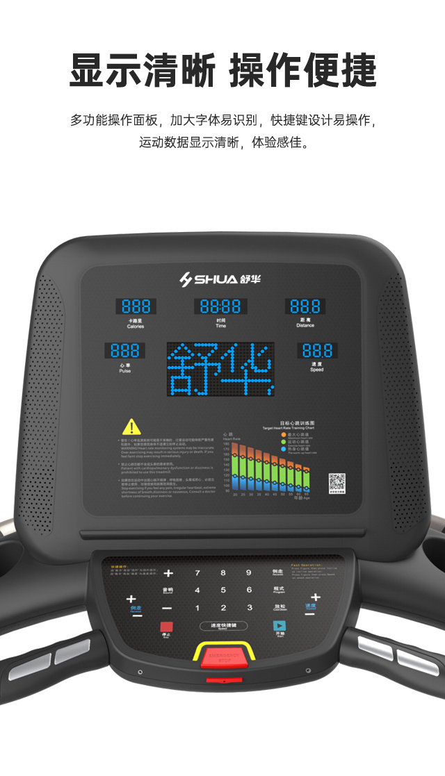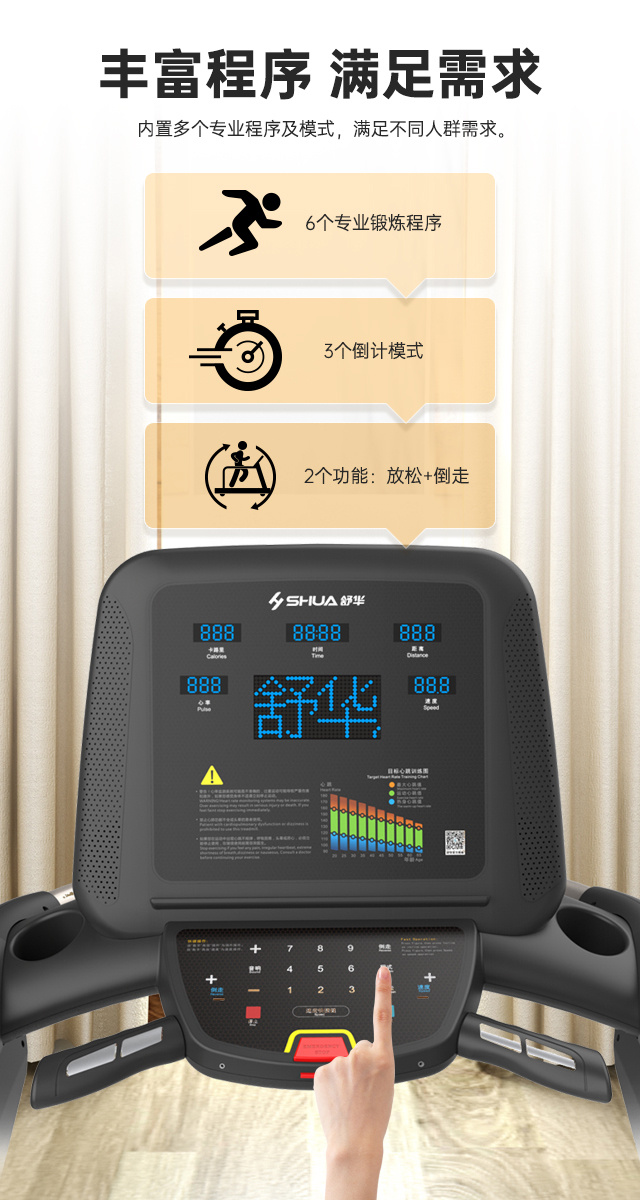 舒華多功能跑步機T56 SH-T5600-T2跑臺尺寸是480×1200mm,持續馬力是DC 1.5CHP(無刷電機)。